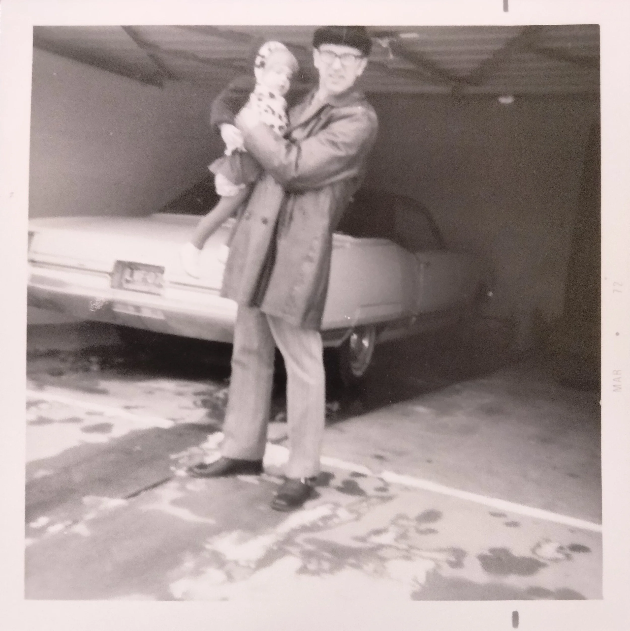 Circa early 70’s sepia black and white polaroid of my dad and me after work.